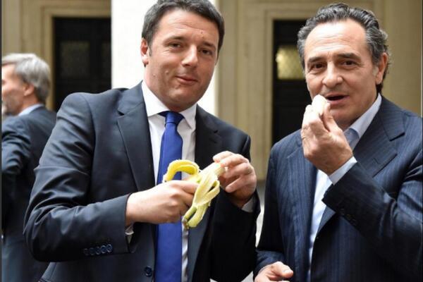 No paran de sumarse deportistas a la movida: posar con una banana y sumarse a la etiqueta #SomosTodosMacacos. Desde el argentino Kun Aguero hasta Cesare Prandelli y Matteo Renzi, técnico de Italia y el primer ministro.